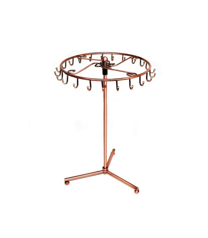 Dieser Aussteller ist für das Aufhängen von Halsketten, Armbändern, Anhängern, Ketten und anderen Arten von Schmuck konzipiert. Der untere Teil des Ständers misst 15x17cm, die Höhe beträgt 31cm, der Durchmesser beträgt 20cm und es gibt 23 Haken (1x2cm).