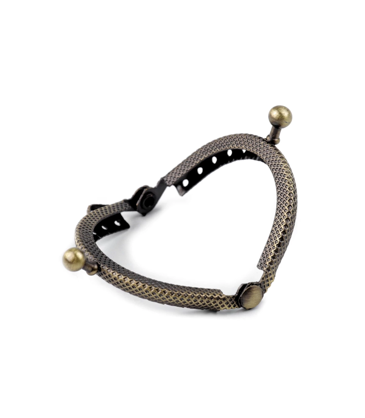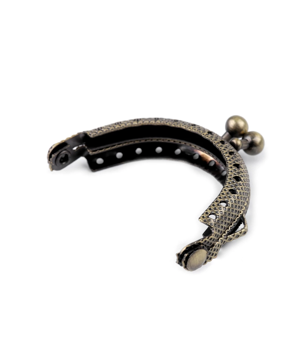 The metal vintage frame is suitable for making a mini wallet. The frame is intended for sewing, when the fabric is inserted inside and manually stitched through the holes, the span of which is 5 mm. The holes are only on the outside of the frame, which is longer than the inside, so sewing is easier.