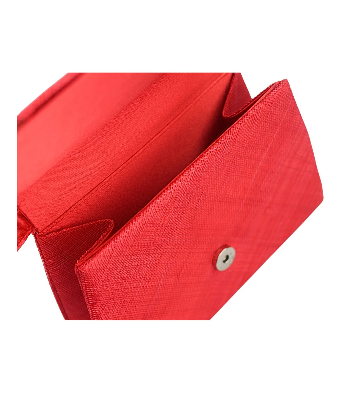 Diese elegante Tasche ist aus hochwertigem Sinamay gefertigt, das eine anspruchsvolle Textur und einen besonderen Akzent für Ihre schicksten Anlässe bietet. Ihr Inneres ist mit Satin ausgekleidet. Sie verfügt über einen praktischen Henkel für bequemes Tragen und eine kleine Innentasche.