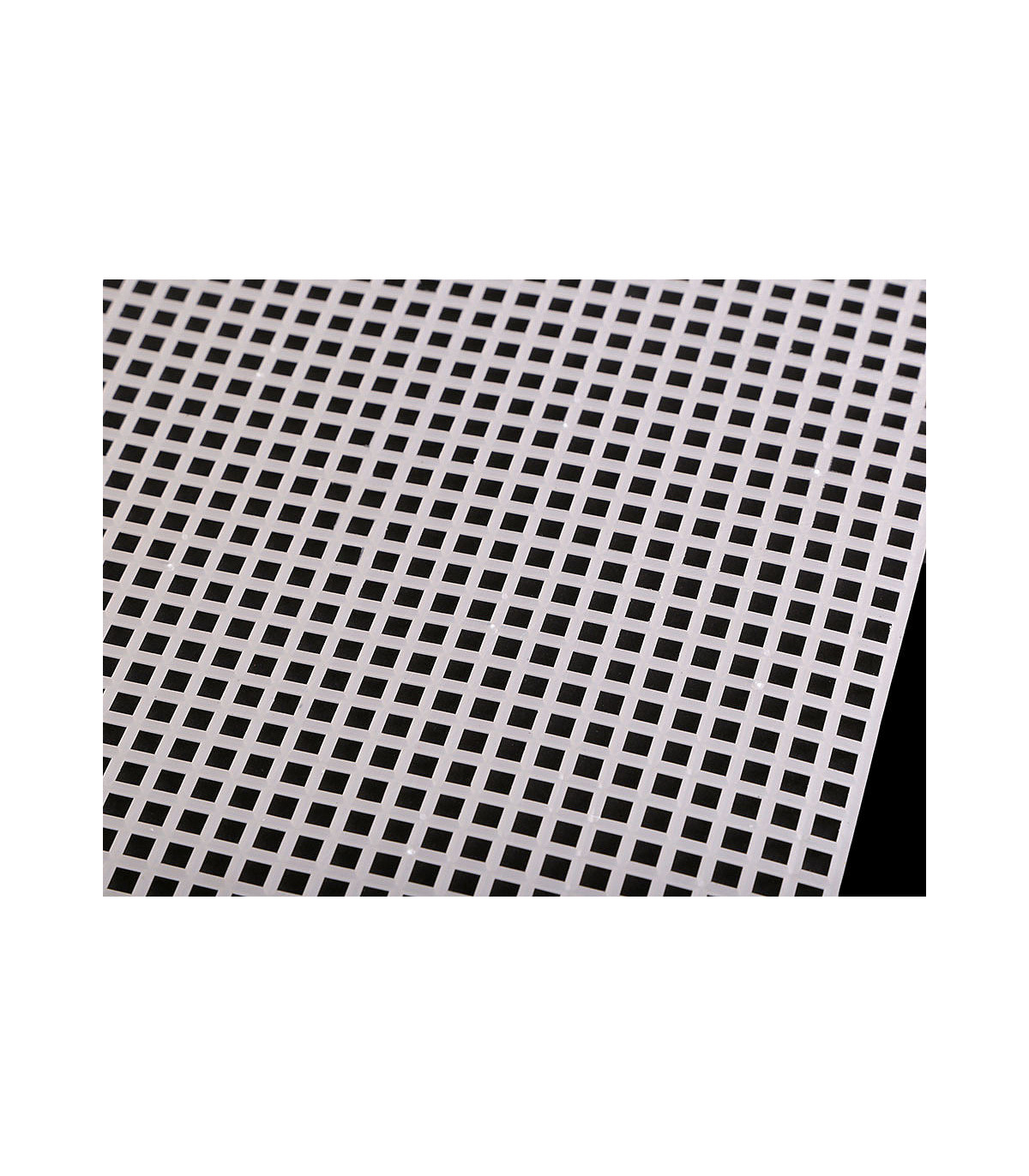 Die Stärke des Gewebes beträgt etwa 1,8 mm. Jedes Quadrat misst 4 x 4 mm, und die Dichte beträgt 17 Quadrate pro 10 cm.