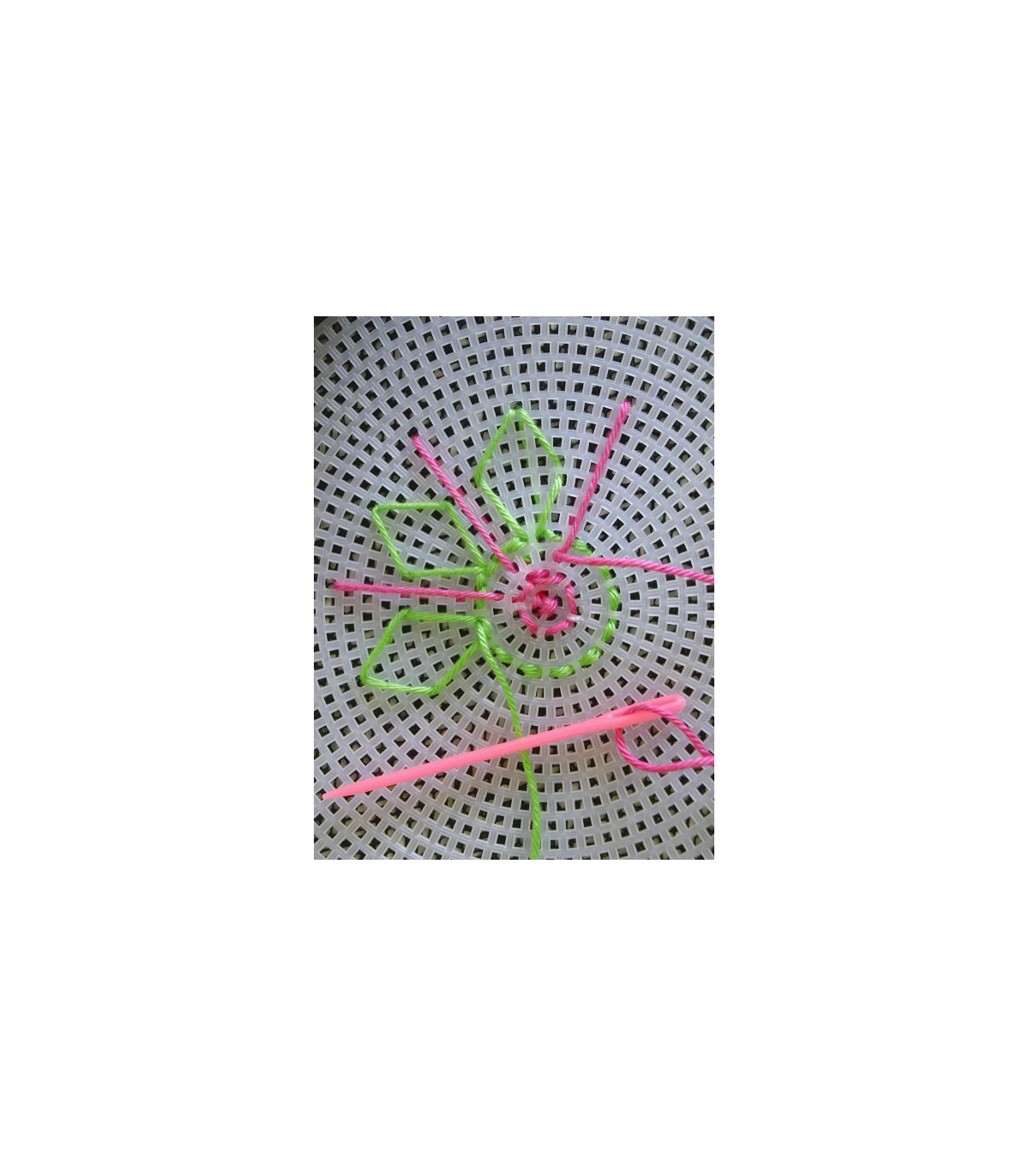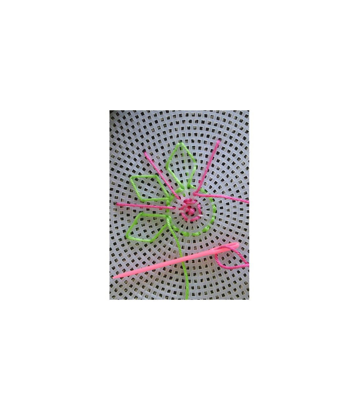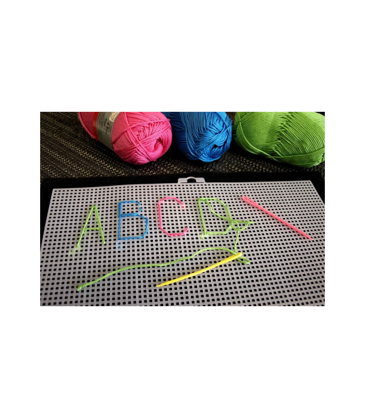 Kunststoffgewebe, entwickelt für die Tapiko-Technik, bei der Garnstücke mit einem Haken an einem Gitter befestigt werden. Die stabile Struktur ermöglicht präzises Arbeiten.