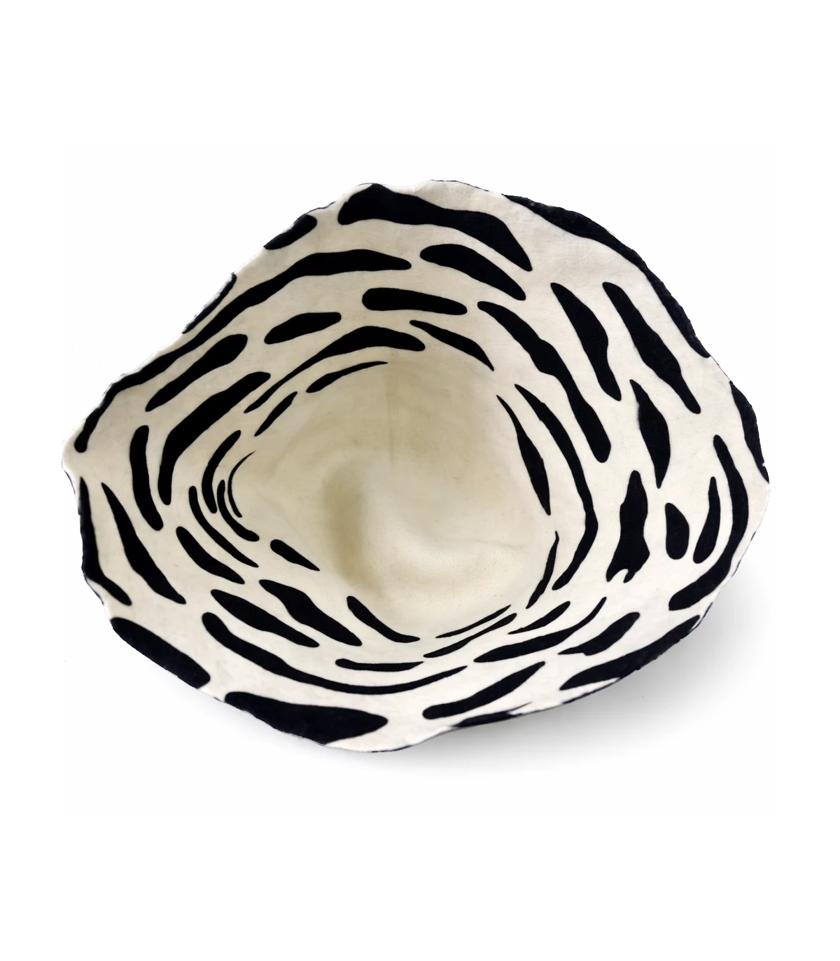Filzkegel für die Hutherstellung, gefertigt aus 100 % hochwertiger Merinowolle, verziert mit einem Muster, das einen eleganten und zeitlosen Stil verleiht. Dieses Premium-Material zeichnet sich durch seine Weichheit, Strapazierfähigkeit und hervorragende Formbarkeit aus und ist ideal für hochwertige Hutkreationen.