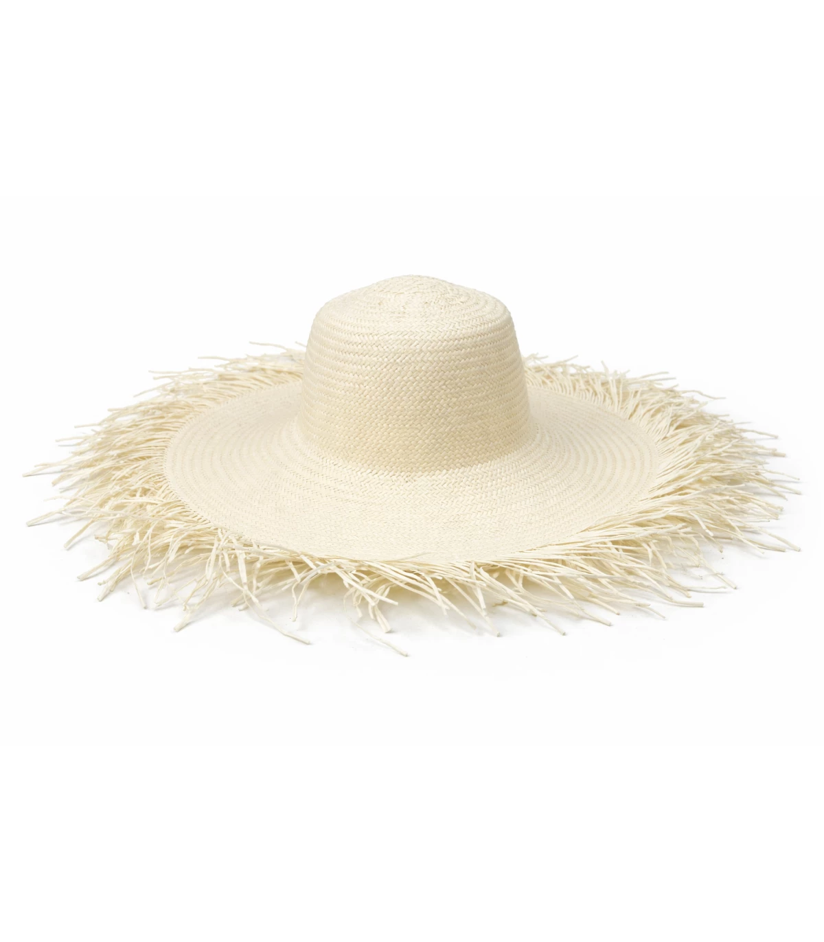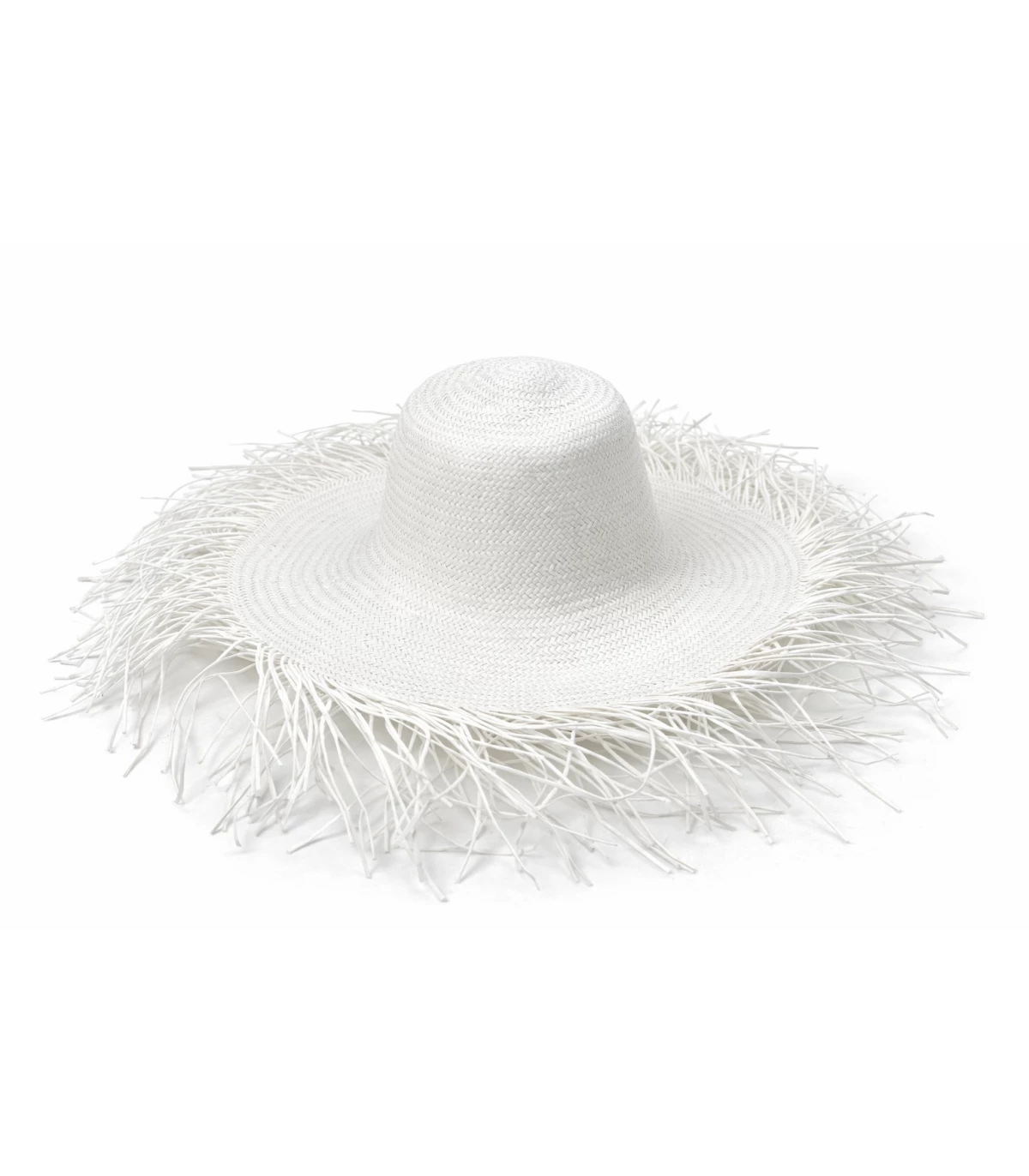 Capeline aus Papierfaser, einem leichten und vielseitigen Material, das in der modernen Hutmacherei wegen seiner gleichmäßigen Struktur, einfachen Verarbeitung und ansprechenden Optik sehr geschätzt wird. Das feine, gleichmäßige Flechtmuster in Kombination mit dem ausgefransten Rand verleiht ihr einen frischen, zeitgemäßen Charakter – ideal für Frühjahrs- und Sommerkollektionen.