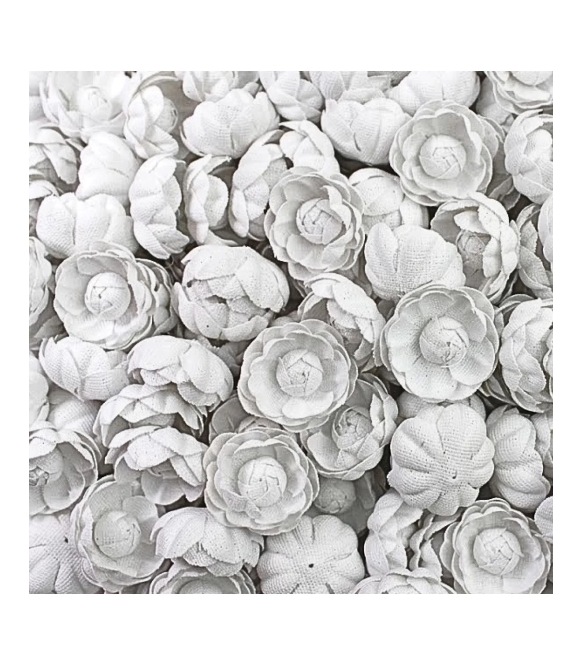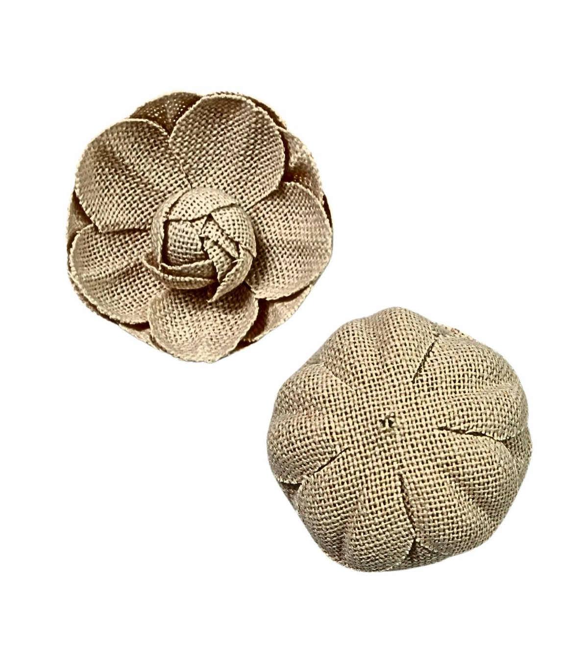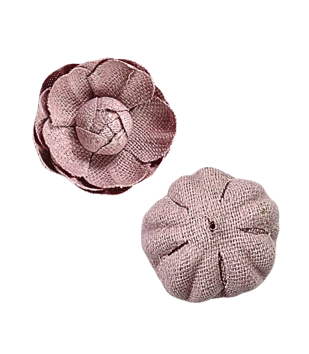 Mini-Kamelie aus Stoff mit rustikalem Finish, perfekt, um jeder Kreation eine zarte und natürliche Note zu verleihen.