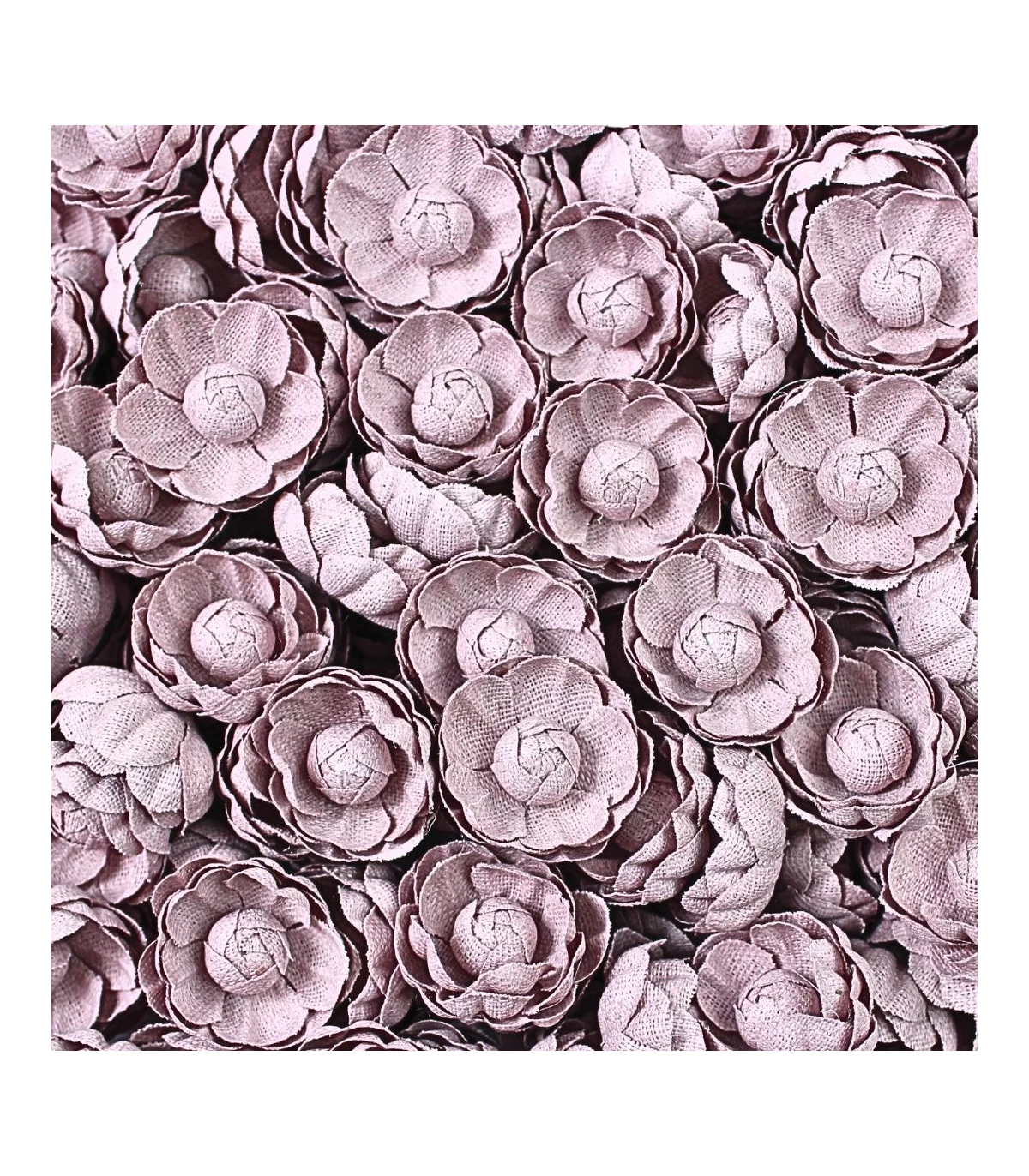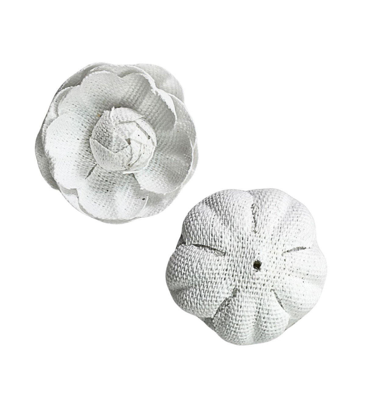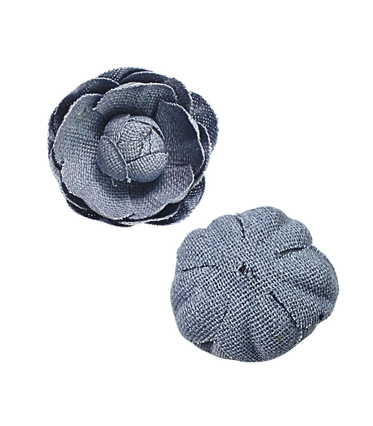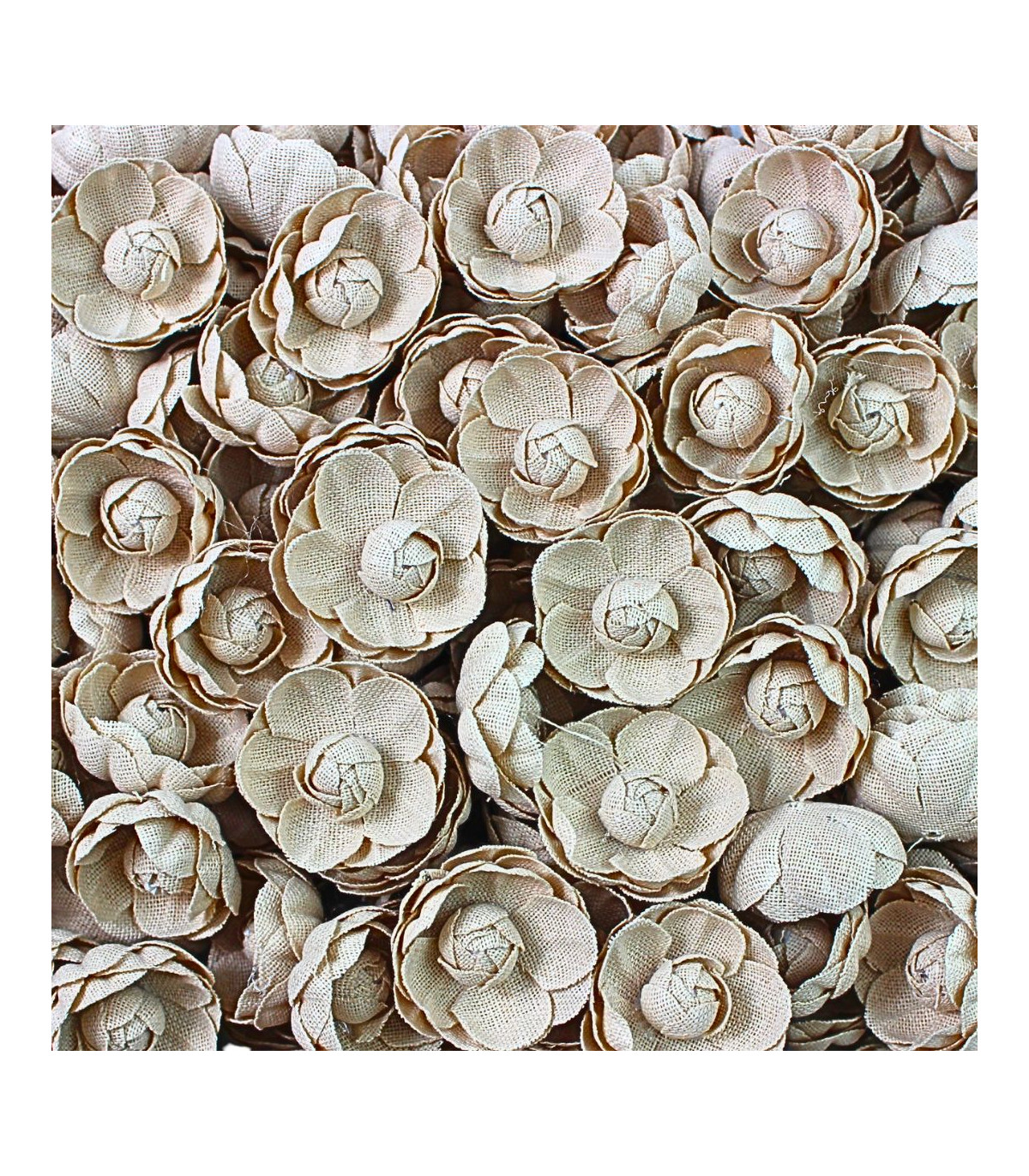 Mini-Kamelie aus Stoff mit rustikalem Finish, perfekt, um jeder Kreation eine zarte und natürliche Note zu verleihen.