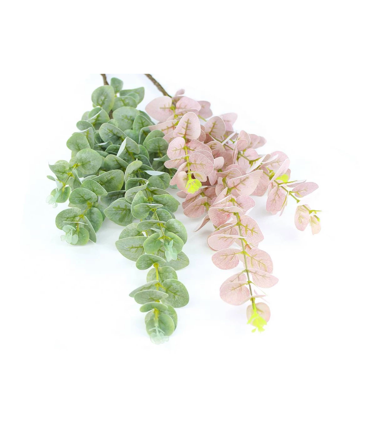 This branch of eucalyptus is composed of fabric and plastic and can be used to decorate headdresses, and accessories.