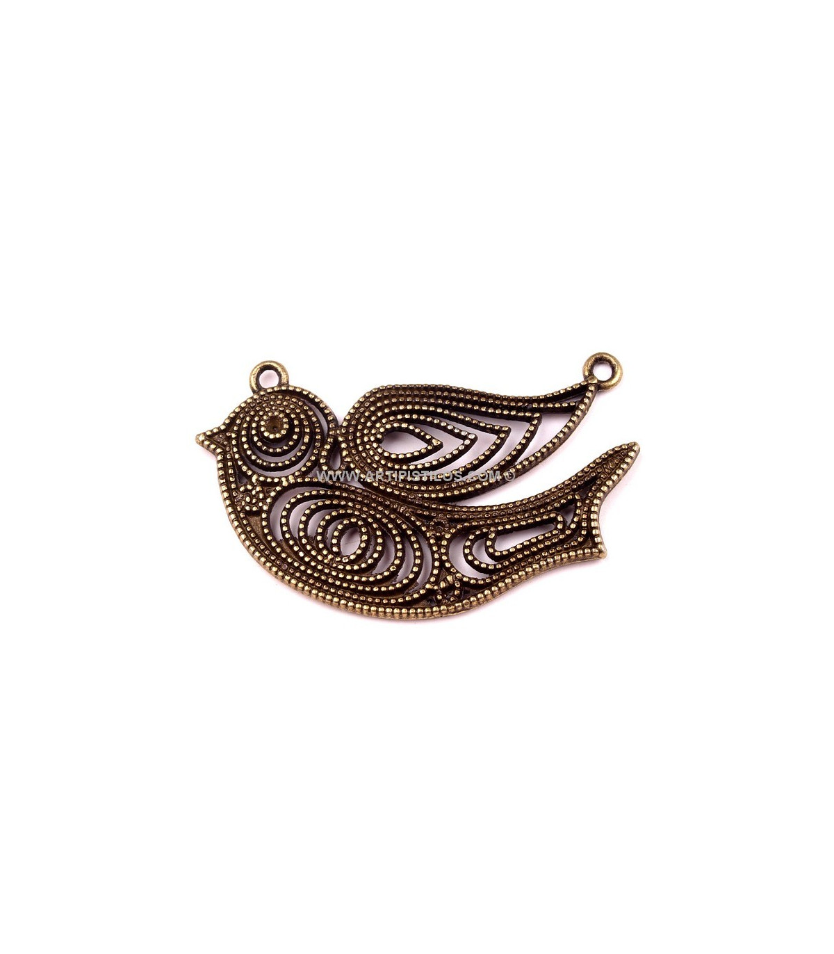 "The 25 x 40 mm brass-colored bird supply is perfect for your jewelry projects. Its filigree design is delicate and elegant, making it ideal for creating unique and sophisticated accessories."
