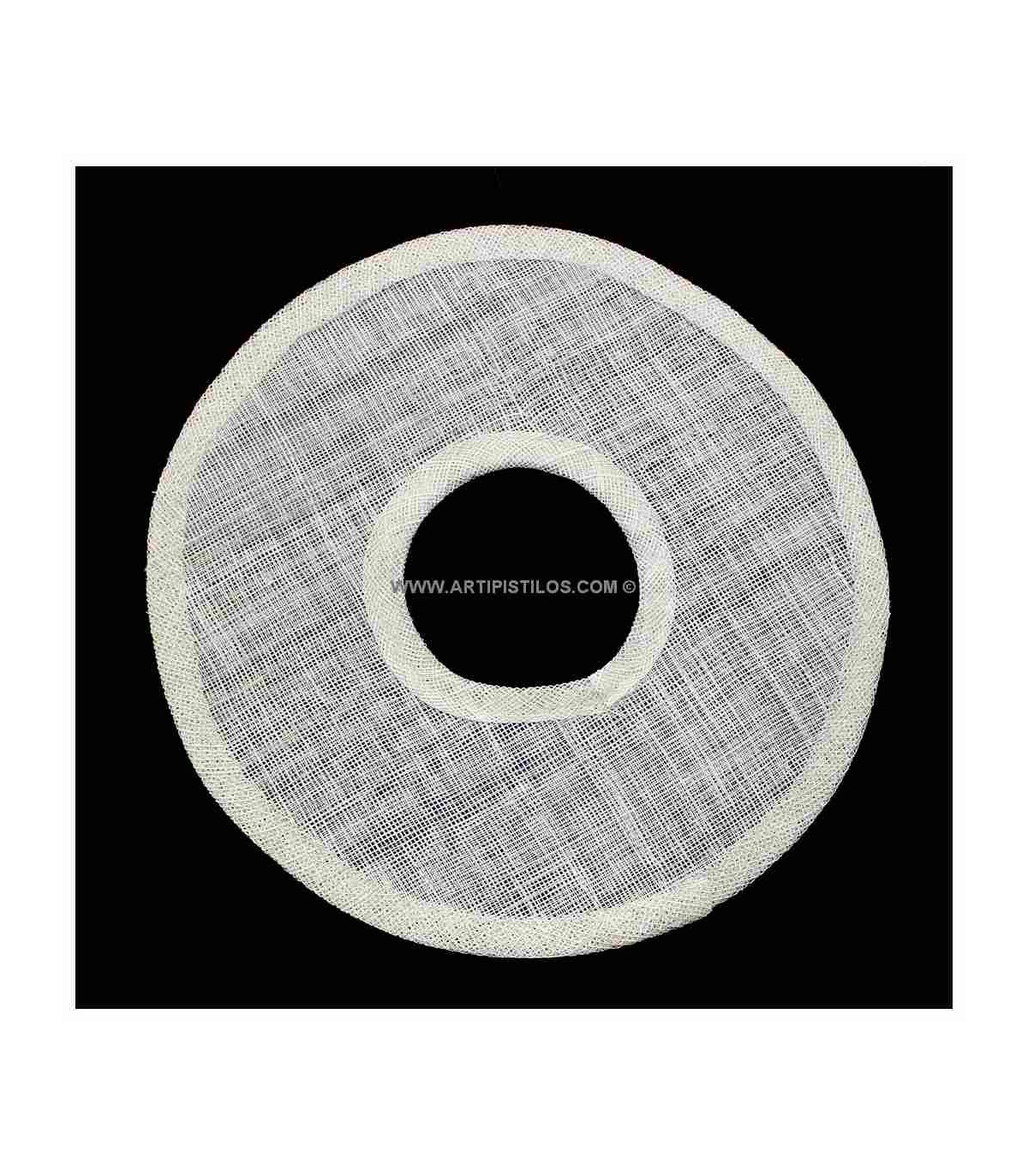 Hat brim made in stiffened sinamay with a hole.