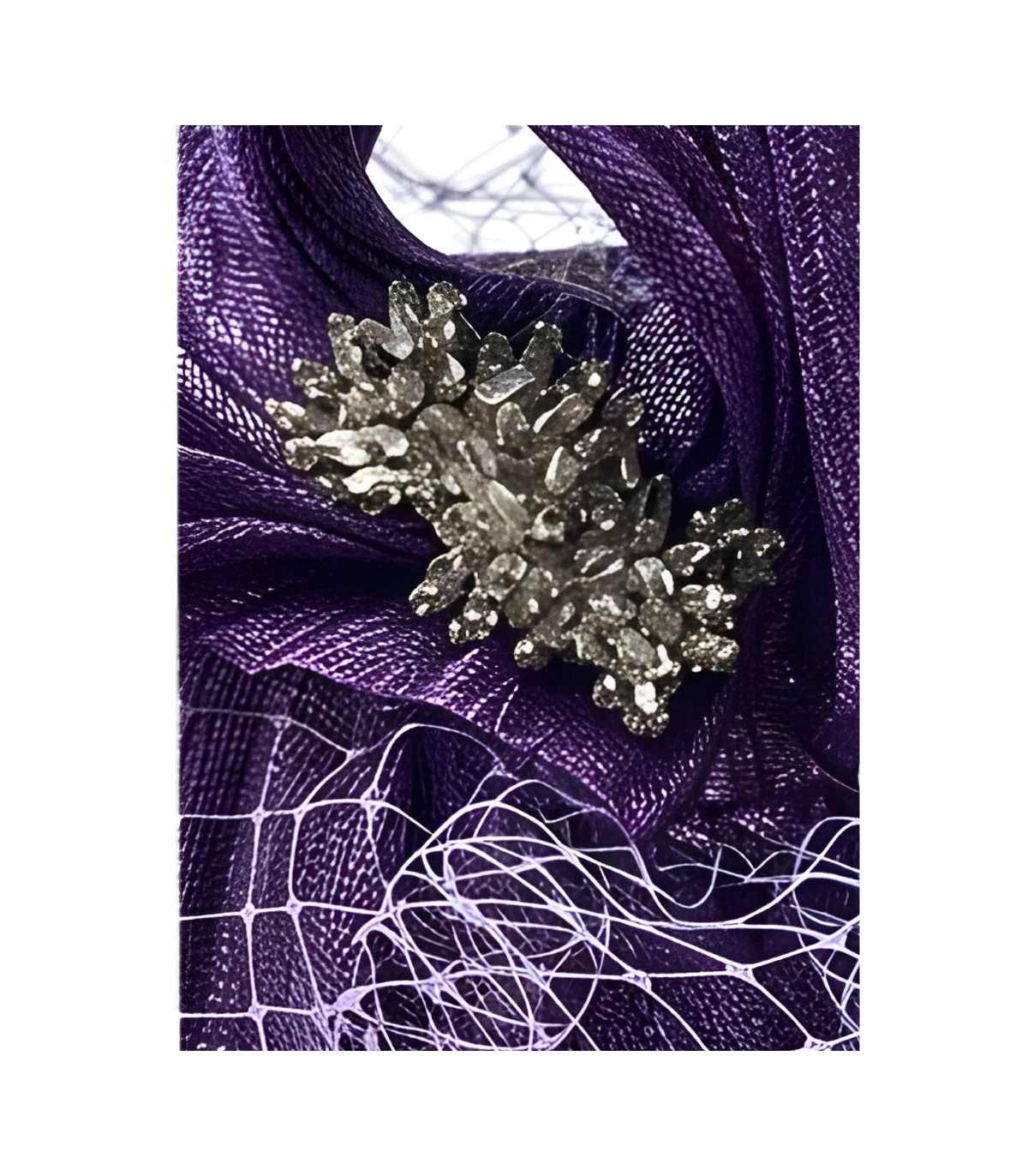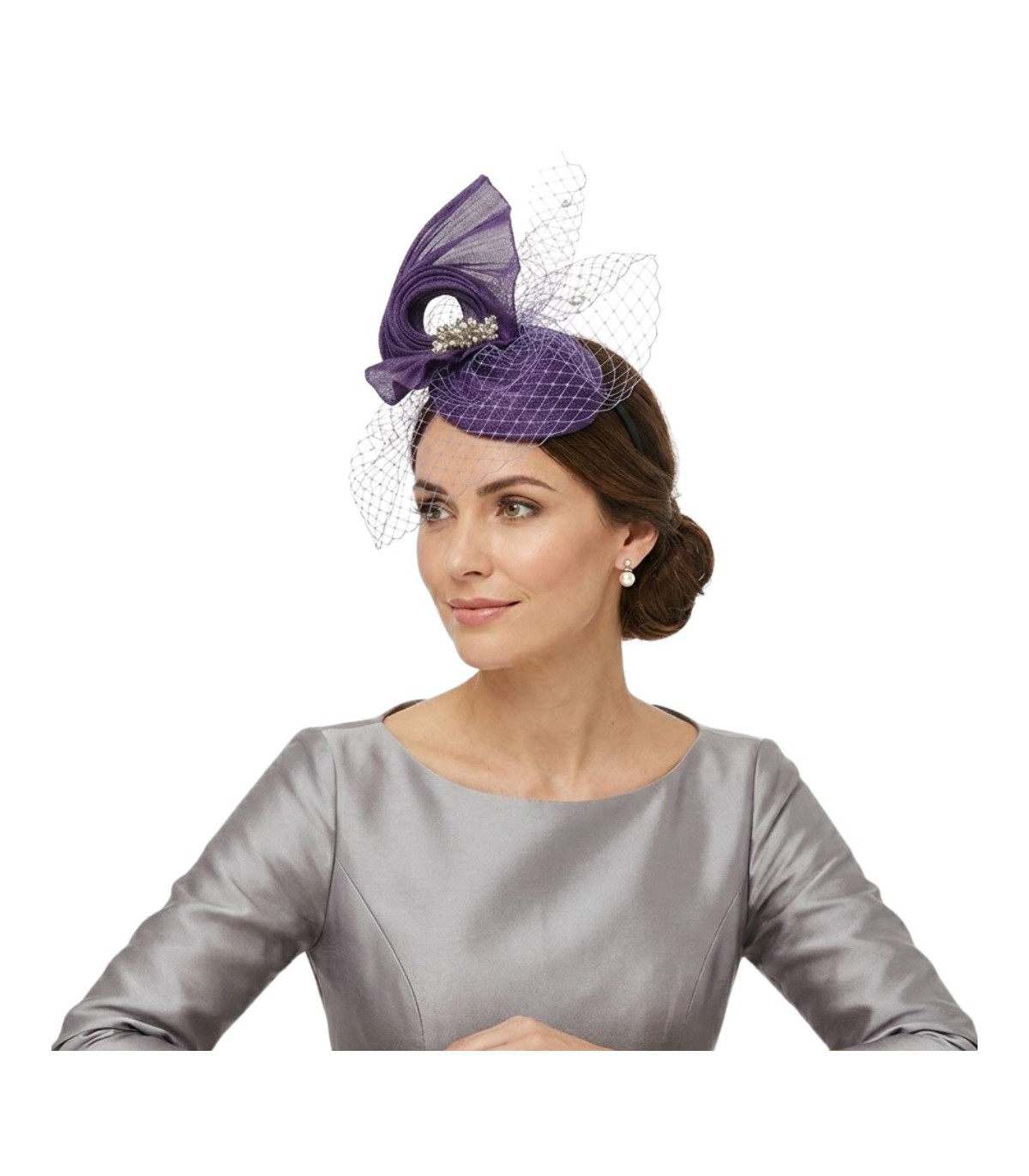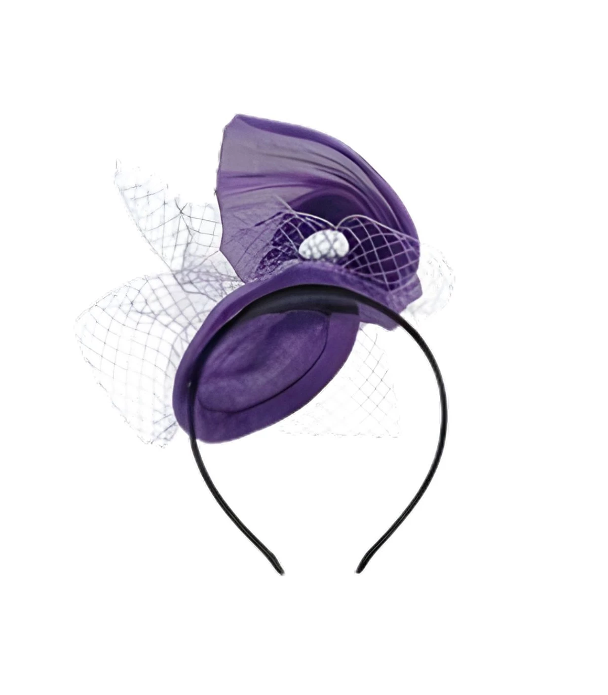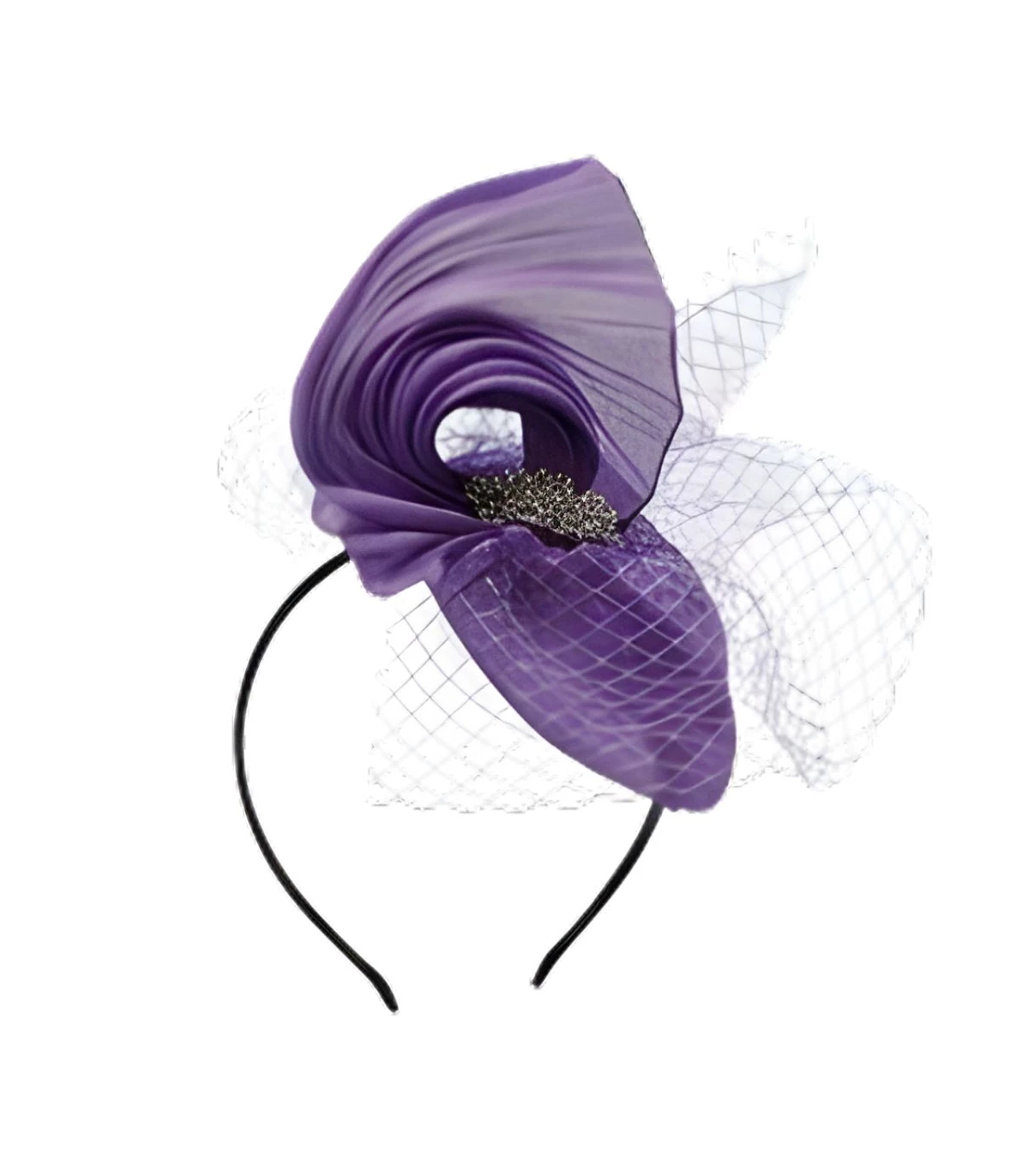 Details: Adorned with a tulle veil and a rhinestone embellishment.