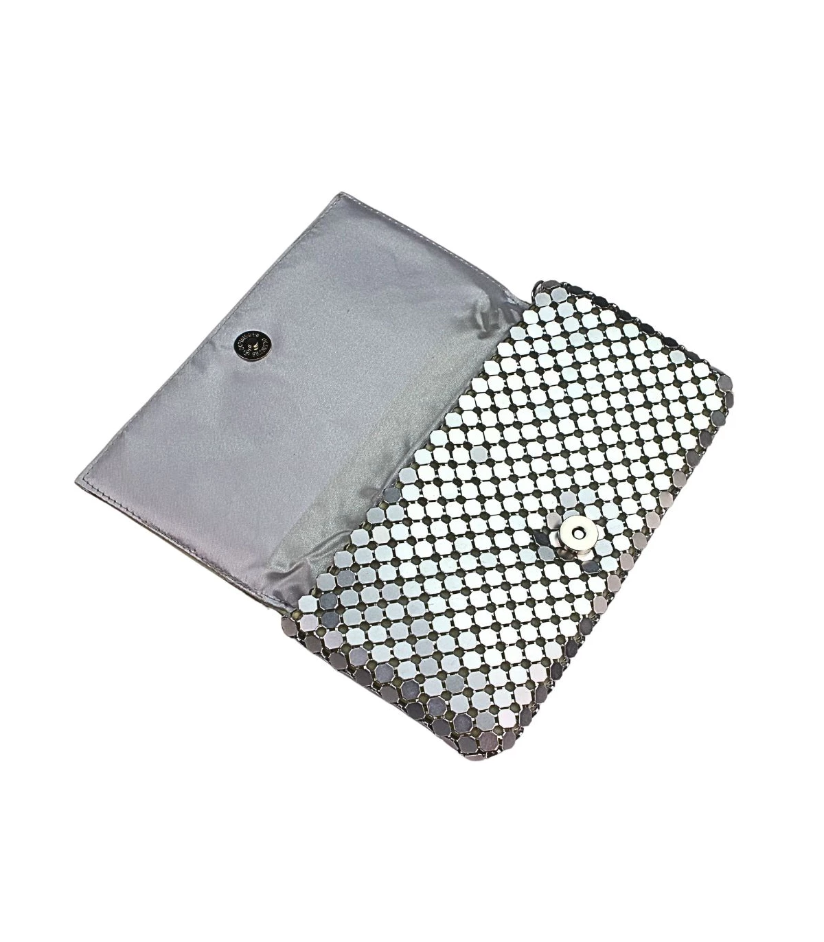 Discover "Alloy", a sophisticated and versatile handbag in an elegant silver tone. Its structure combines 20% alloy and 80% plastic, achieving a shiny and modern finish, ideal for any special occasion.