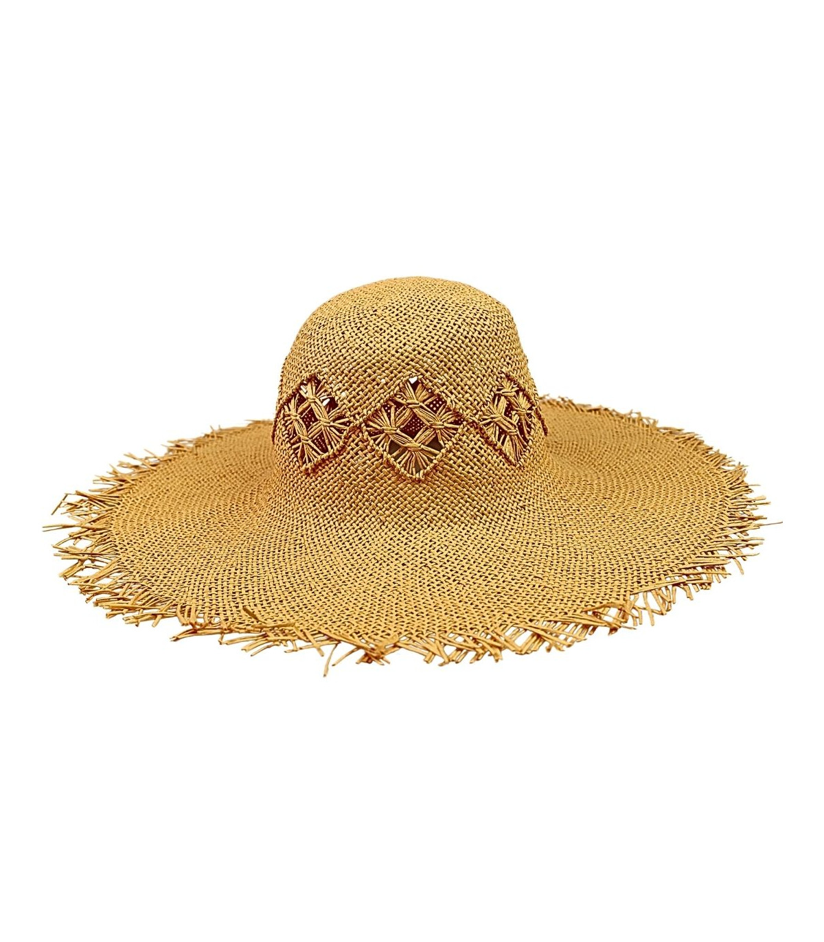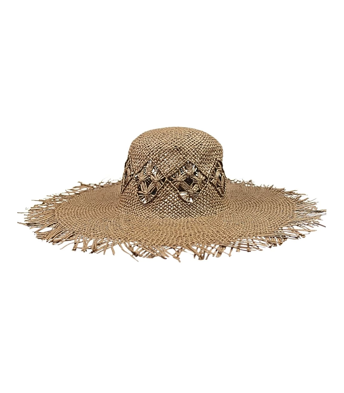 This paper fiber capelina features a unique fringed finish that gives it a bohemian and natural feel, perfect for summer looks.