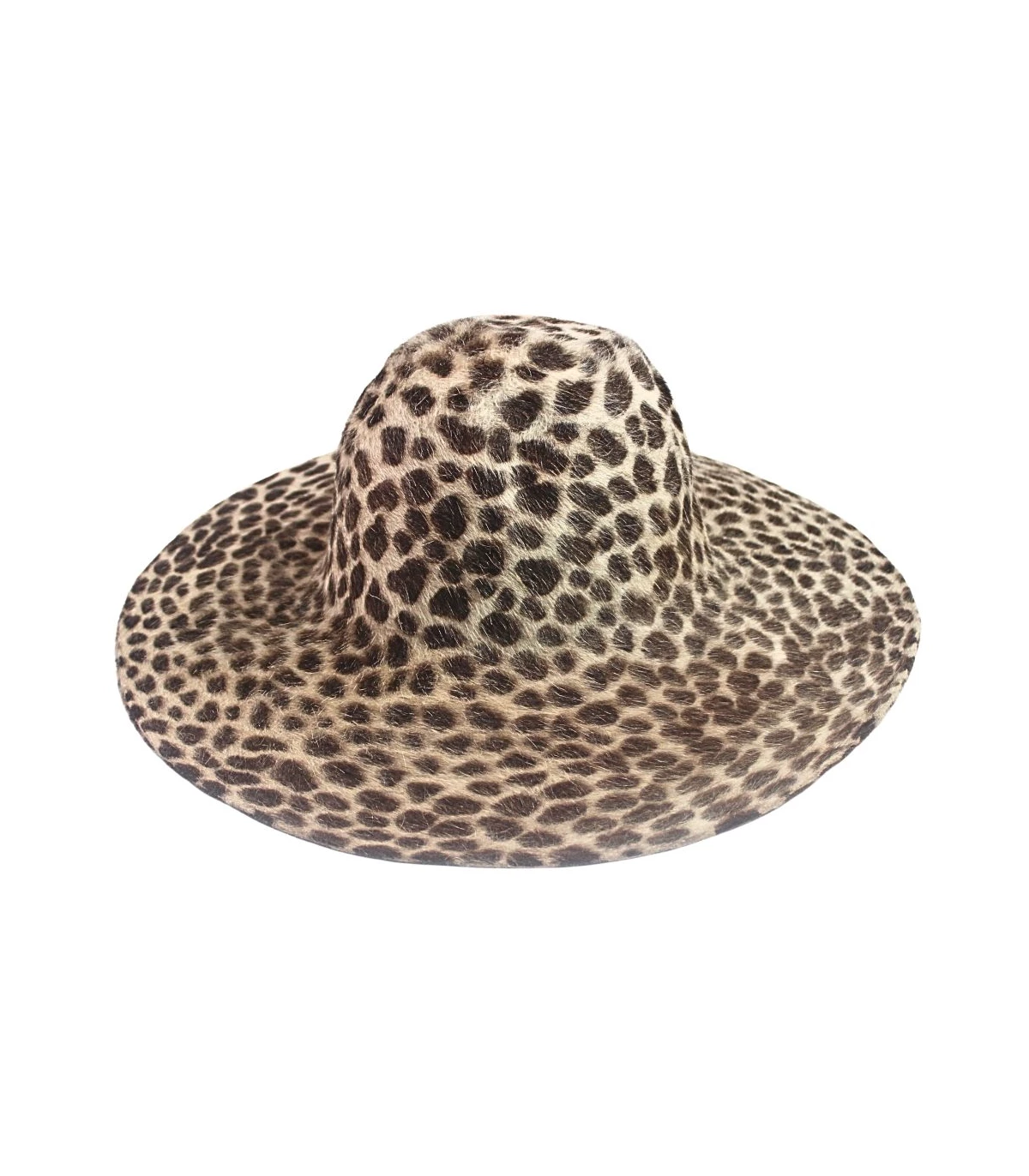 A high-quality millinery piece with a spectacular leopard (ocelot) print that makes it an elegant and very fashionable essential.