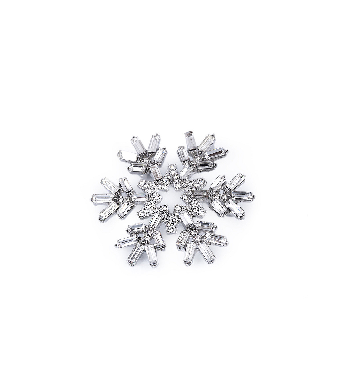 Snowflake-shaped brooch with sparkling crystal inlays, perfect for adding an elegant touch both for everyday wear and for special occasions such as theater, celebrations, or social events. It can be attached to hats, handbags, or scarves to enhance any outfit.