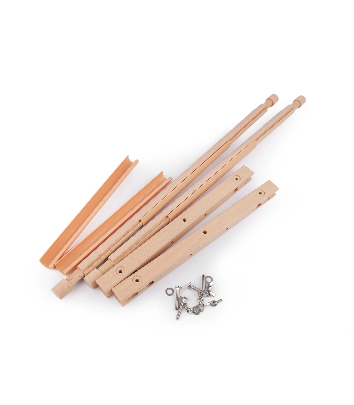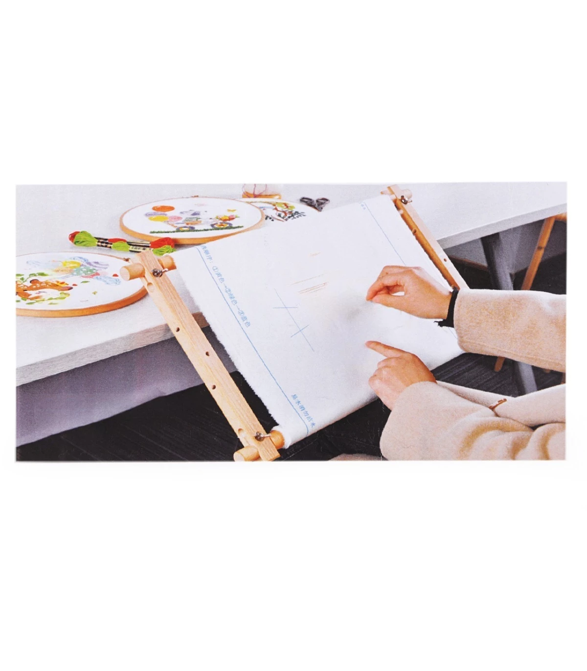 Unpainted wooden frame that makes embroidering on large canvases easier. Simply insert the fabric and secure it with the included clips. It also allows you to place two canvases at once.