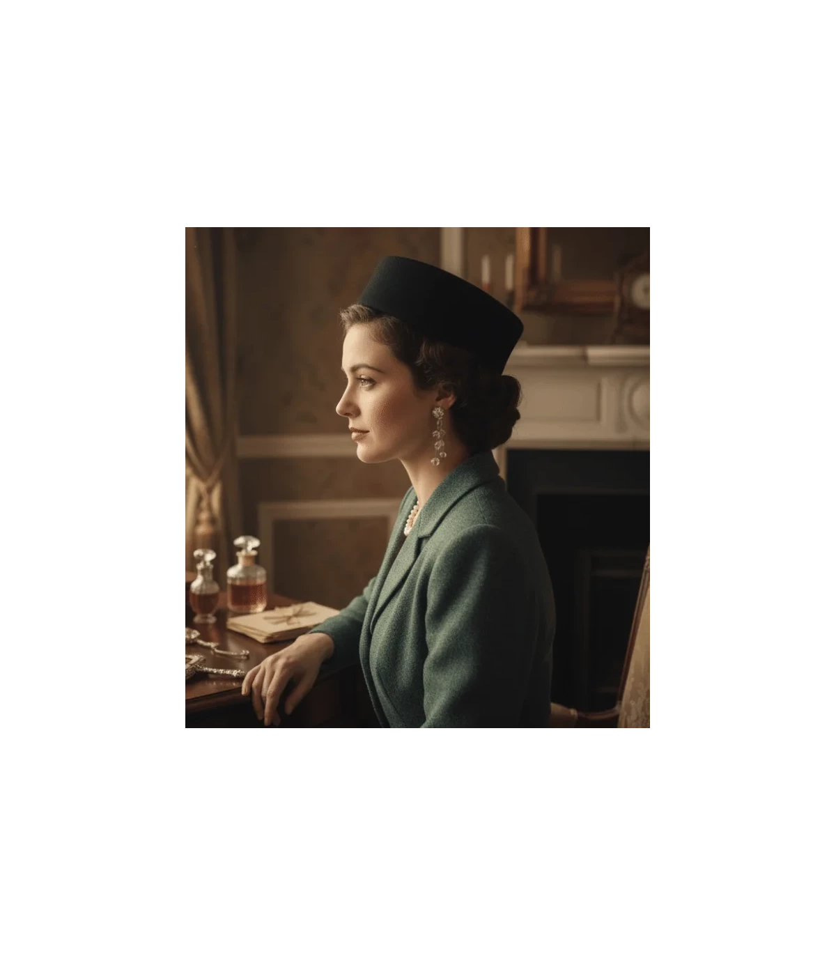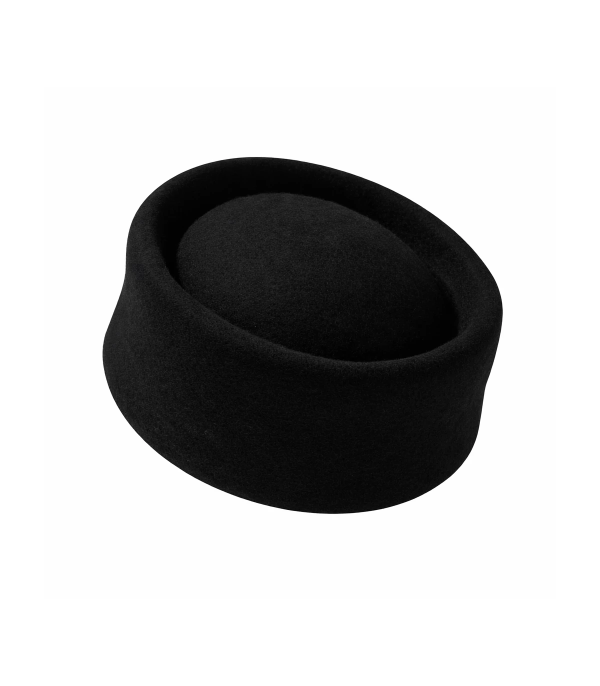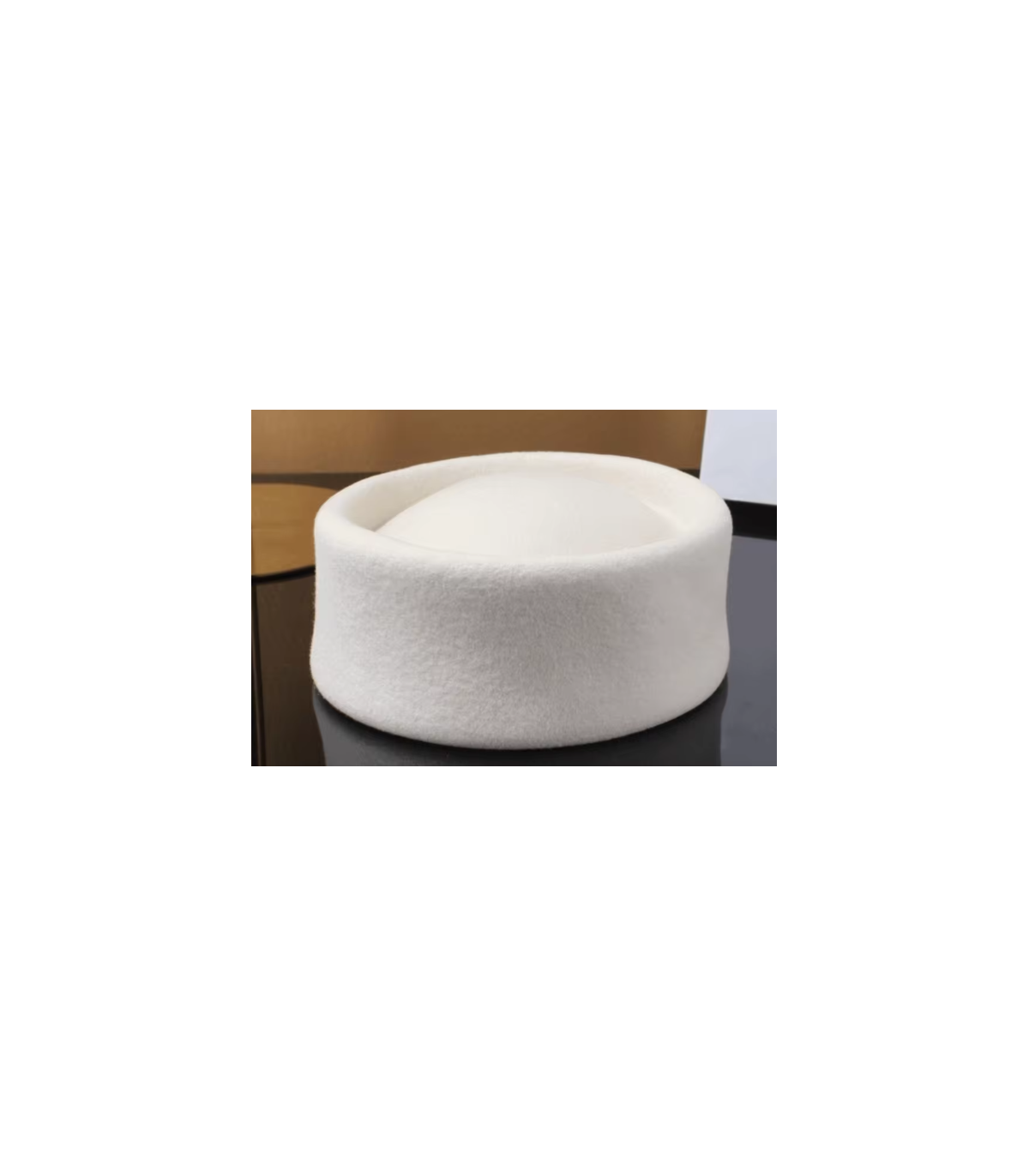 Pillbox base made from wool felt, inspired by the iconic mid-20th-century pillbox hat, a design traditionally associated with French and British feminine elegance.