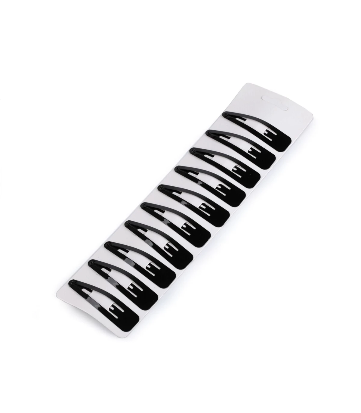Metal clips that hold firmly in the hair without causing uncomfortable pressure. Their shiny surface provides an elegant and professional finish.