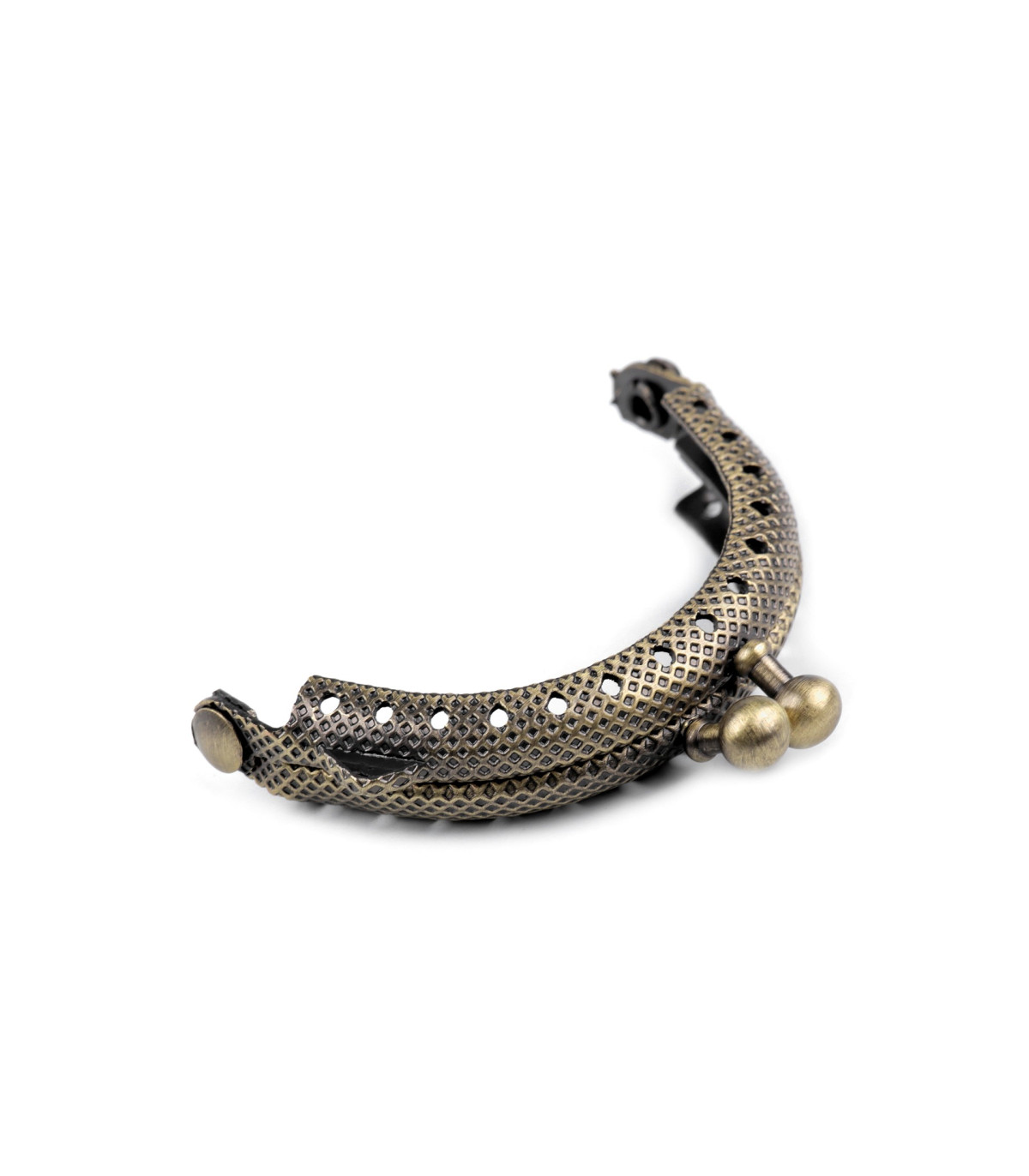 The metal vintage frame is suitable for making a mini wallet. The frame is intended for sewing, when the fabric is inserted inside and manually stitched through the holes, the span of which is 5 mm. The holes are only on the outside of the frame, which is longer than the inside, so sewing is easier.