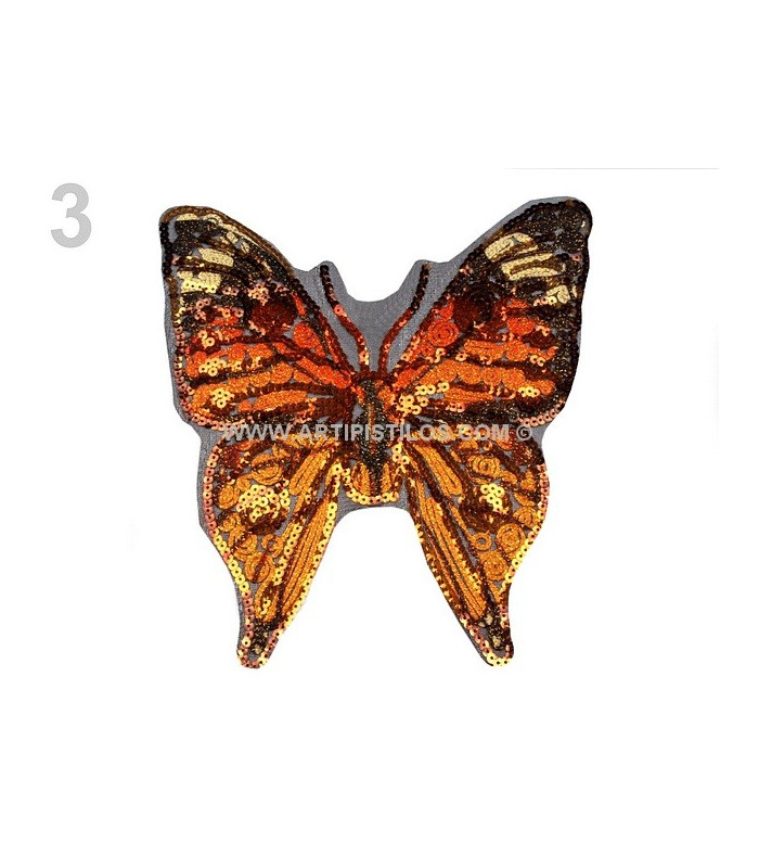 BUTTERFLY WITH SEQUINS APPLIQUE 23 X 23 CMS.