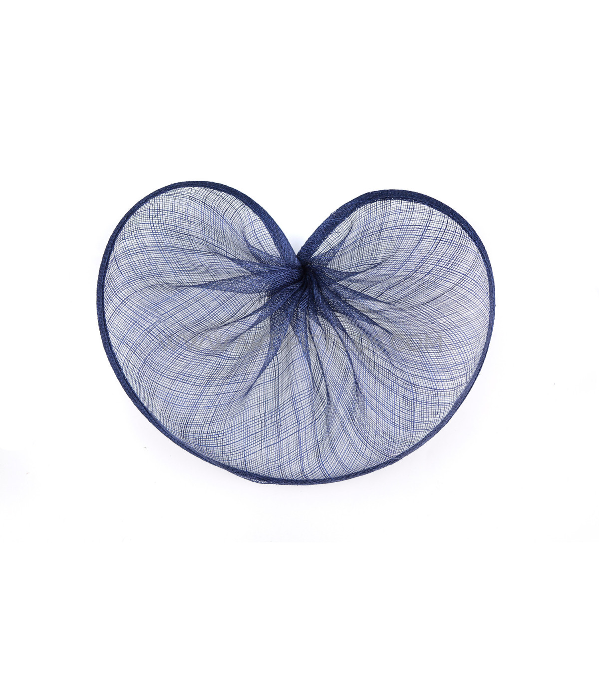 Sinamay heart-shaped base. A base with a headband is necessary to hold it. With this fastening system can be adjusted to any size. The edge of the wing is reinforced with a border/bies of the same material.