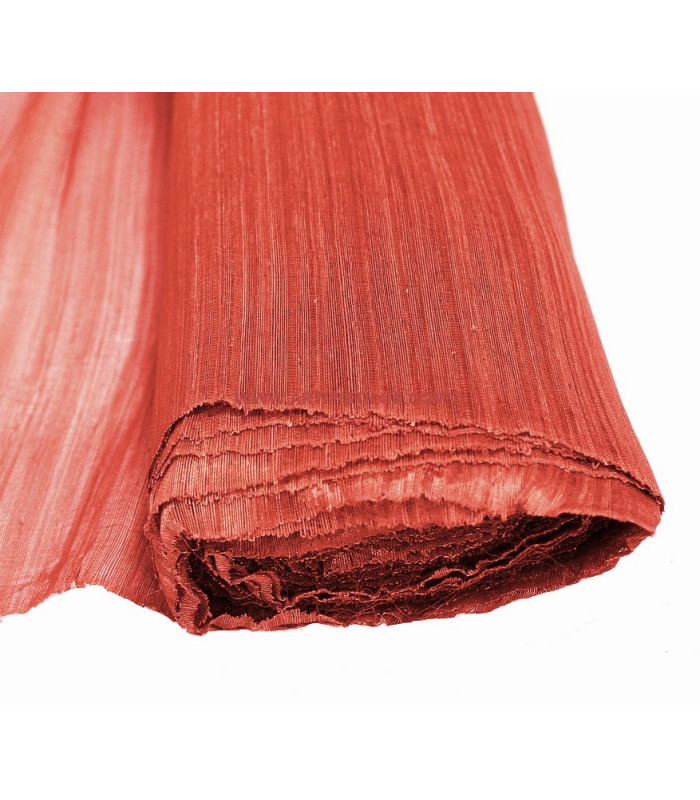 A mixture of silk and abaca fiber, this exquisite fabric is ideal for sculpted works. Its unique shine and vibrant color comes from the mixture of fine silk woven through banana palm fibers.