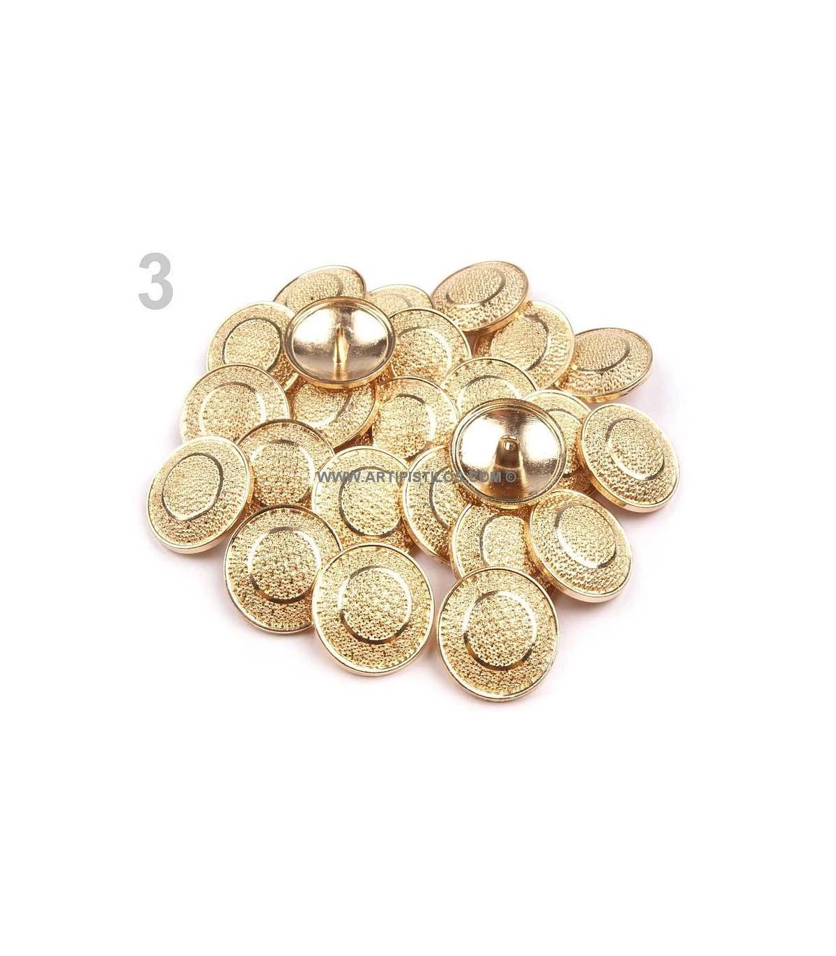 Este botón metálico de 25 mm de diámetro es perfecto para agregar un toque elegante a cualquier prenda de vestir. Disponible en tres colores: niquel, oro y plata, es ideal para confeccionar prendas de alta calidad.