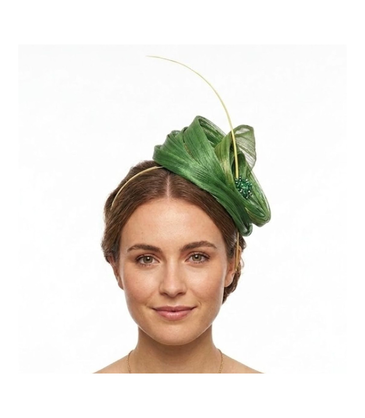 Detalles: Base de sinamay seda, adornado con un raqui y una aplicación de pedrería.