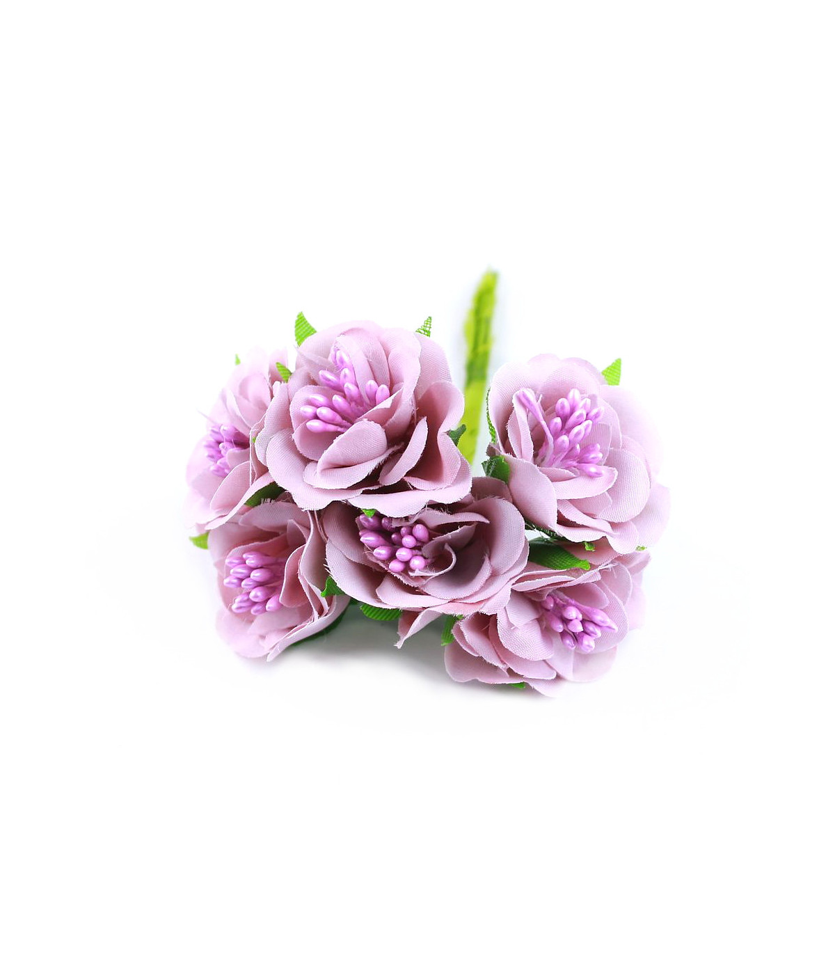 Pomo compuesto por 6 unidades de flores de tela. Las flores incluyen pistilos perlados.