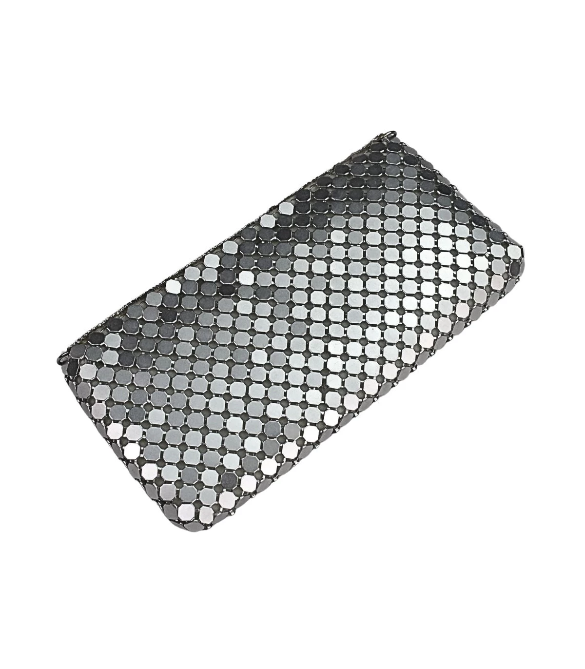 Descubre "Alloy", un bolso de diseño sofisticado y versátil en un elegante tono plateado. Su estructura combina 20% alloy y 80% plástico, logrando un acabado brillante y moderno ideal para cualquier ocasión especial.