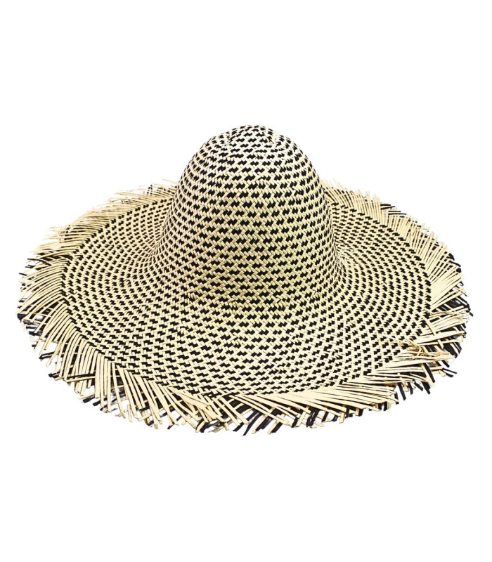Capelina para sombrerería fabricada con un 90% de fibra de papel y un 10% de algodón, con un diseño bicolor que aporta contraste y un toque moderno.