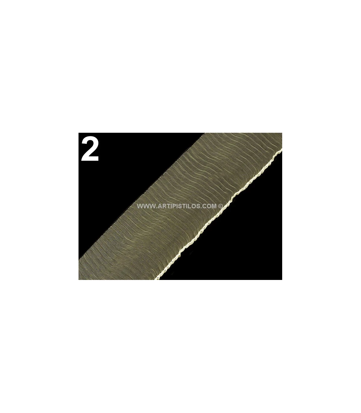 Organza plisada hecha de monofilamento.Sin duda será apreciado por cualquier persona que quiera adornar tocados, pamelas, sombreros, vestidos, blusas o faldas con material más ligero y novedoso.