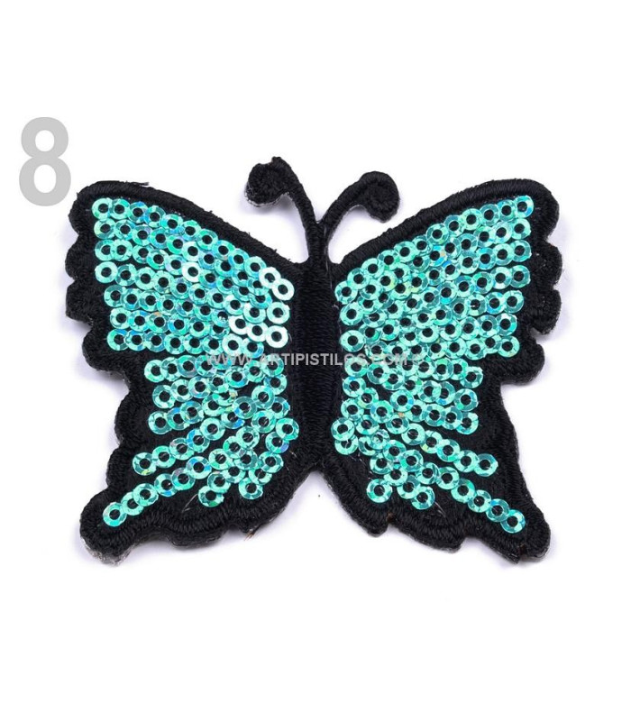 BORBOLETA TERMOADHESIVA CON LENTEJUELAS 5 x 6,5 cm