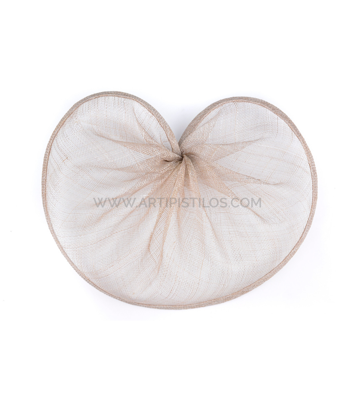 Base em forma de coração Sinamay. Uma base com uma alça é necessária para segurá-la. Com este sistema de fixação pode ser ajustado para qualquer tamanho. A borda da asa é reforçada com uma borda(s) de mesmo material.