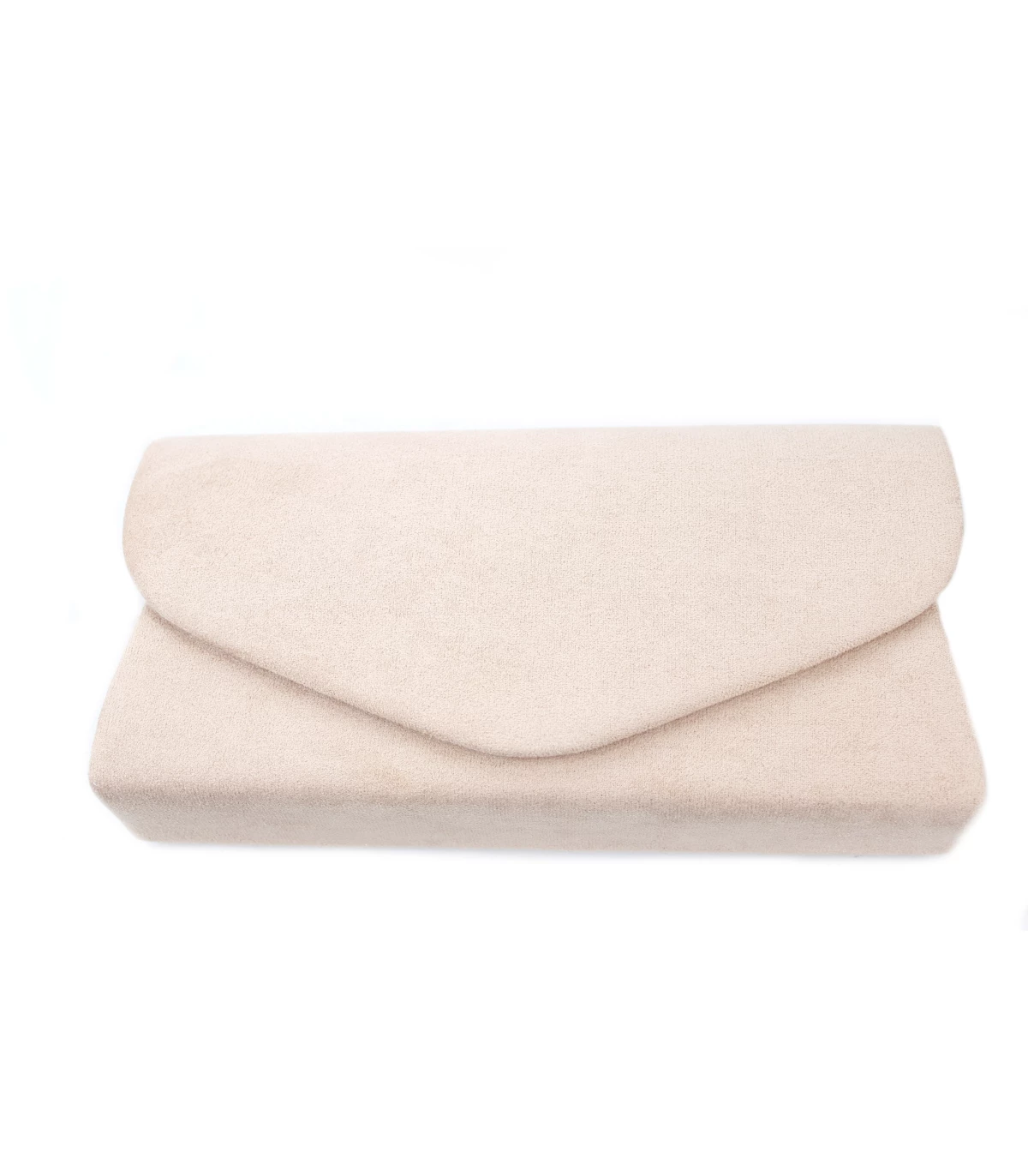 Embreagem com forro de veludo e fechamento magnético. Possui um forro interno de poliéster e um pequeno bolso para inserir pequenos objectos, bem como uma fina corrente de prata. As suas medidas são: