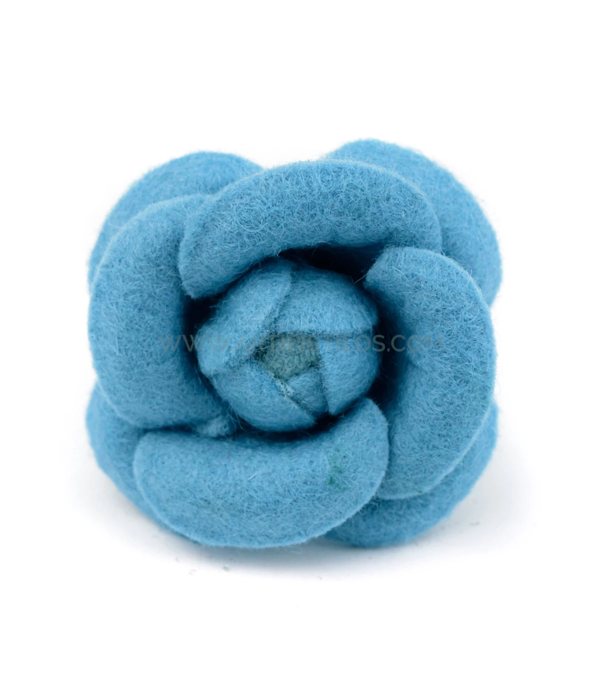 Camélia feita de feltro 100% lã, com uma haste de arame.