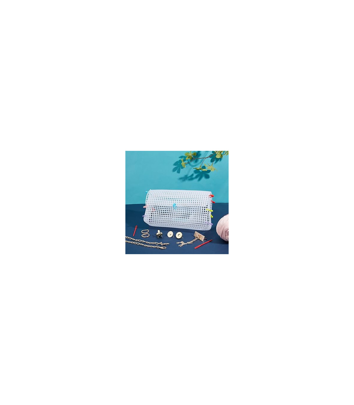 Tela plástica semirrígida ideal para confeccionar porta-moedas ou pequenas bolsas com aba. Depois de bordada e montada, a peça final mede aproximadamente 17,5 x 13,5 x 5 cm e inclui uma alça de 2,5 cm de largura e 38 cm de comprimento.
