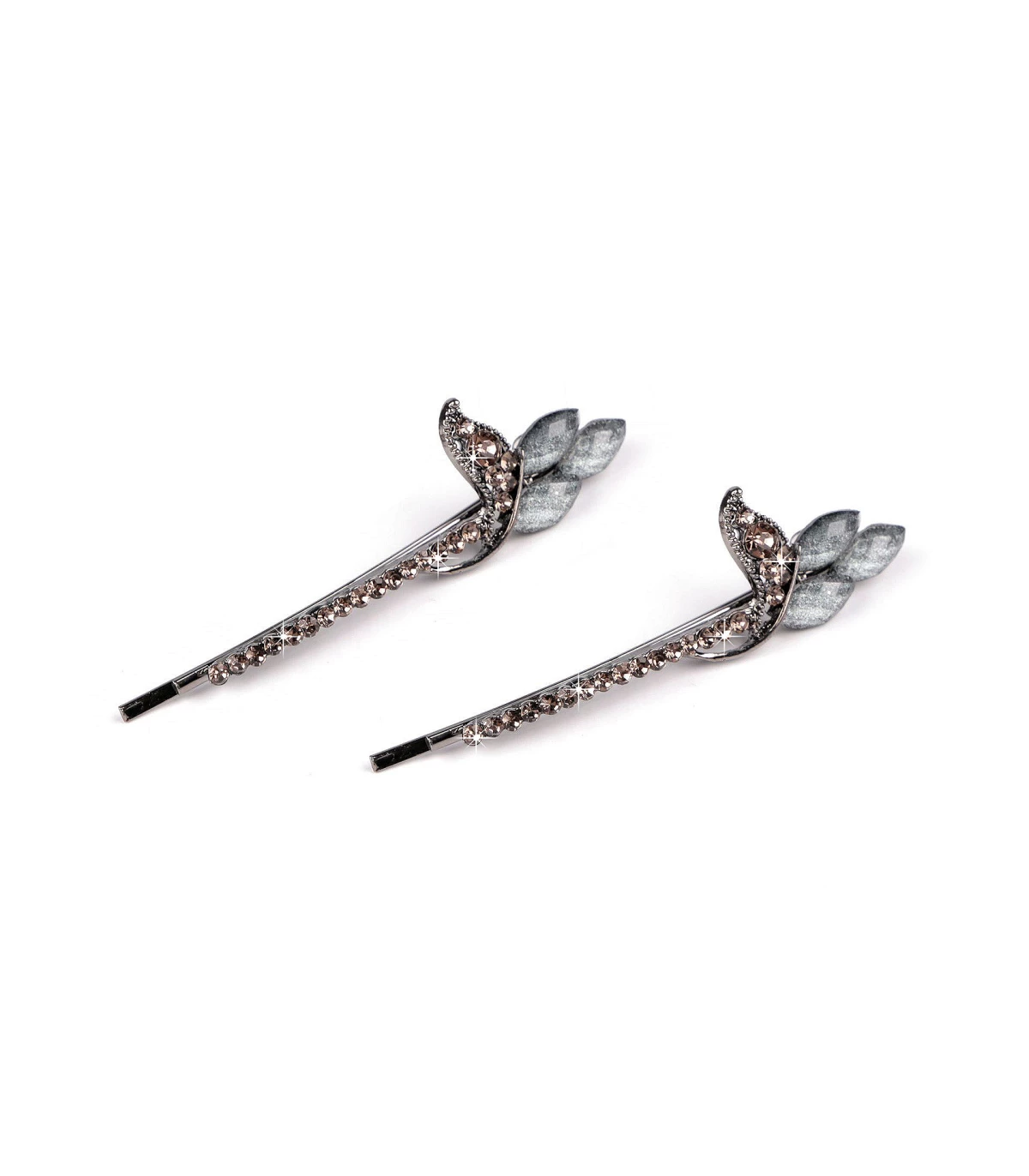 Estas elegantes presilhas de cabelo são decoradas com pedras lapidadas brilhantes. São fabricadas em metal de bijuteria de alta qualidade e fixam-se bem no cabelo. Podem ser usadas no dia a dia, decorando o penteado de forma original.