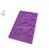 Molde de silicone com 12,5 cm de largura e 19,5 cm de comprimento. A sua espessura é de 9 mm. A profundidade dos motivos individuais é de cerca de 3,5 mm.