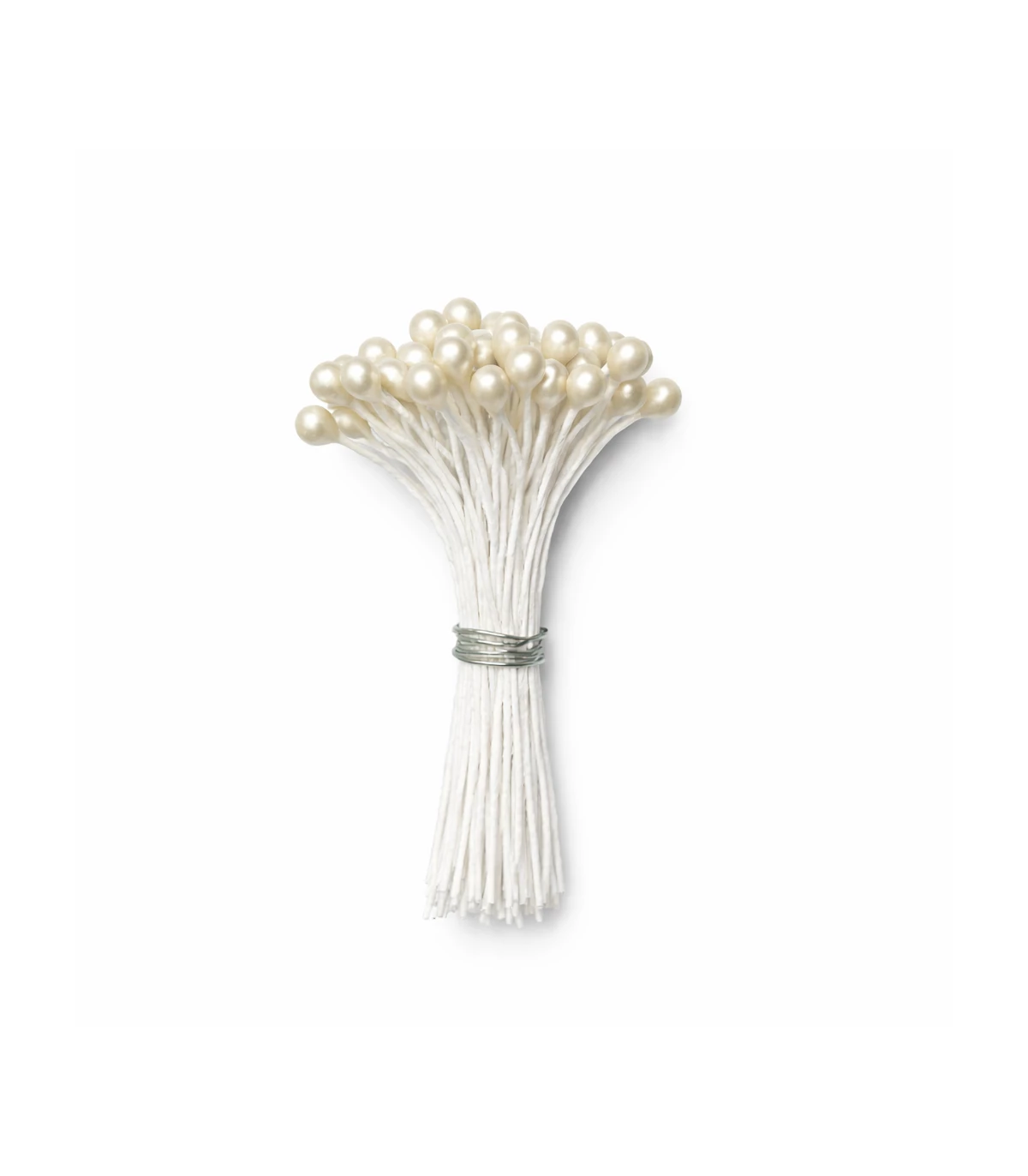 Buquê de 80 pistilos artificiais com haste flexível feita de arame galvanizado revestido com fio de algodão 100 % natural. Cada pistilo mede 8 cm de altura e possui cabeça de 4 mm de diâmetro, proporcionando um acabamento delicado e realista.