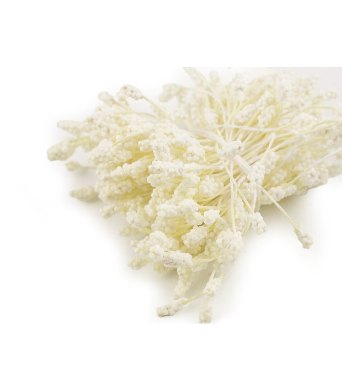 Perfeitos para a criação de flores artificiais, coroas e muito mais. Esses estames consistem em pequenas contas mantidas juntas por um fio amido, ideal para adicionar o toque final às suas criações florais.