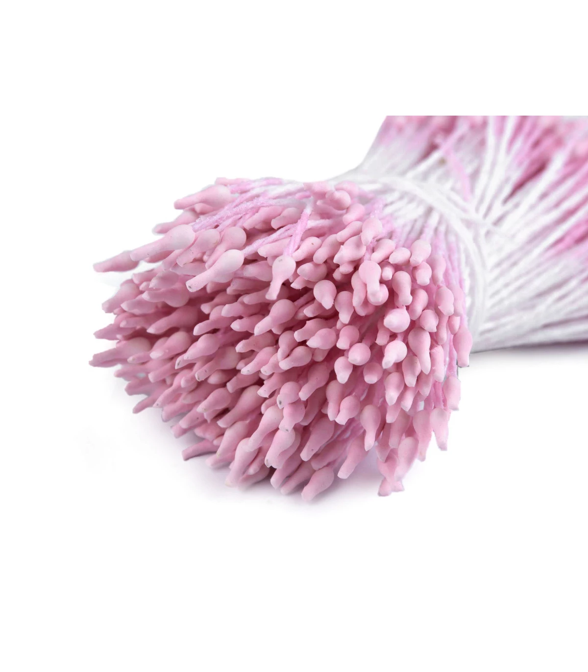 Com um comprimento de aproximadamente 6 cm e um diâmetro de conta de 2 a 2,3 mm, cada feixe contém cerca de 300 peças. Estes estames opacos são feitos de algodão e gesso artesanal, tornando-os perfeitos para uma variedade de técnicas como floricultura, kanzashi, quilling e arte Twist. Além disso, são ideais para a produção de tiaras, fascinators, chapéus, flores e boutonnieres.
